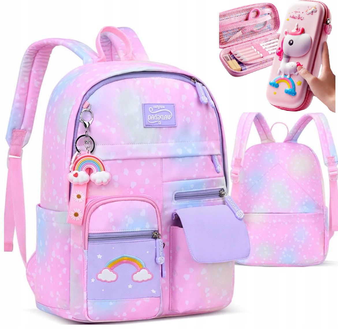 РЮКЗАК RAINBOWACK, РАДУЖНЫЕ СЕРДЕЧКИ + РАДУЖНЫЙ БРЕЛОК + 3D-ПЕНС ЕДИНОРОГ