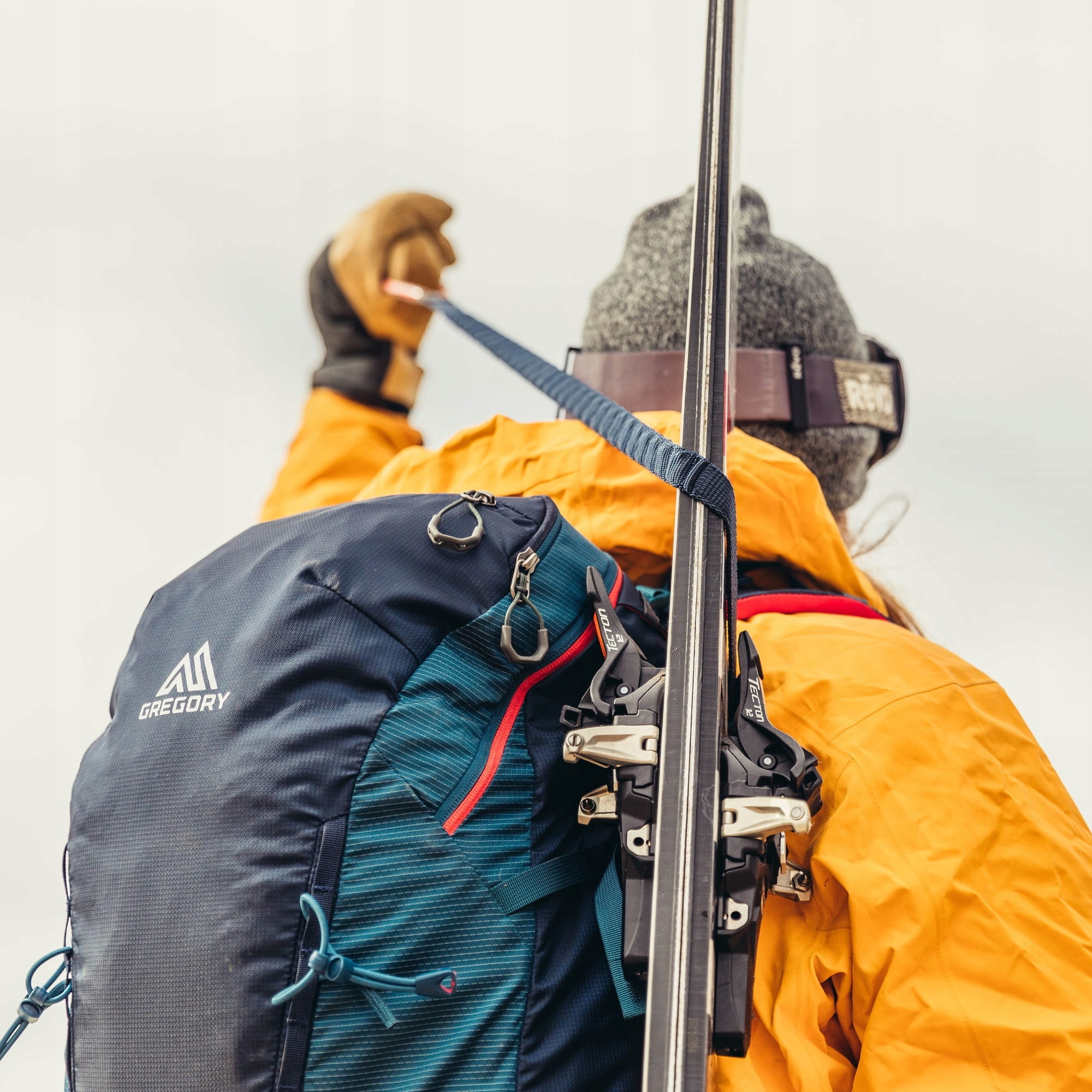 рюкзак Грегори Тарги Fast Track 24 -это универсальный рюкзак, в котором вы можете легко упаковать для скитуры в один день. Мы доберемся до главной камеры рюкзака сверху, через застежку на молнии. Главная камера закончена в верхней части дымохода, которая тянет с носилками с секундомером, подается одной рукой. Точно так же мы попадем в карман для avalanche abc . В передней части карман для плеча и зонд был разделен, к которому доступ очень быстрый и легкий. В рюкзаке, в дополнение к карману для мелких предметов, есть также второй, меньший, который играет роль отсека для хранения для крышки шлема. Шлем может быть установлен в верхней части рюкзака на его передней части.