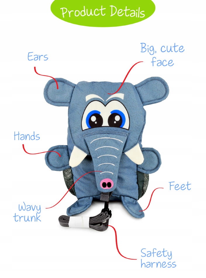 Рюкзак Слон Гуггер Ориентированные приятели 1-4 года А4 Повод А4