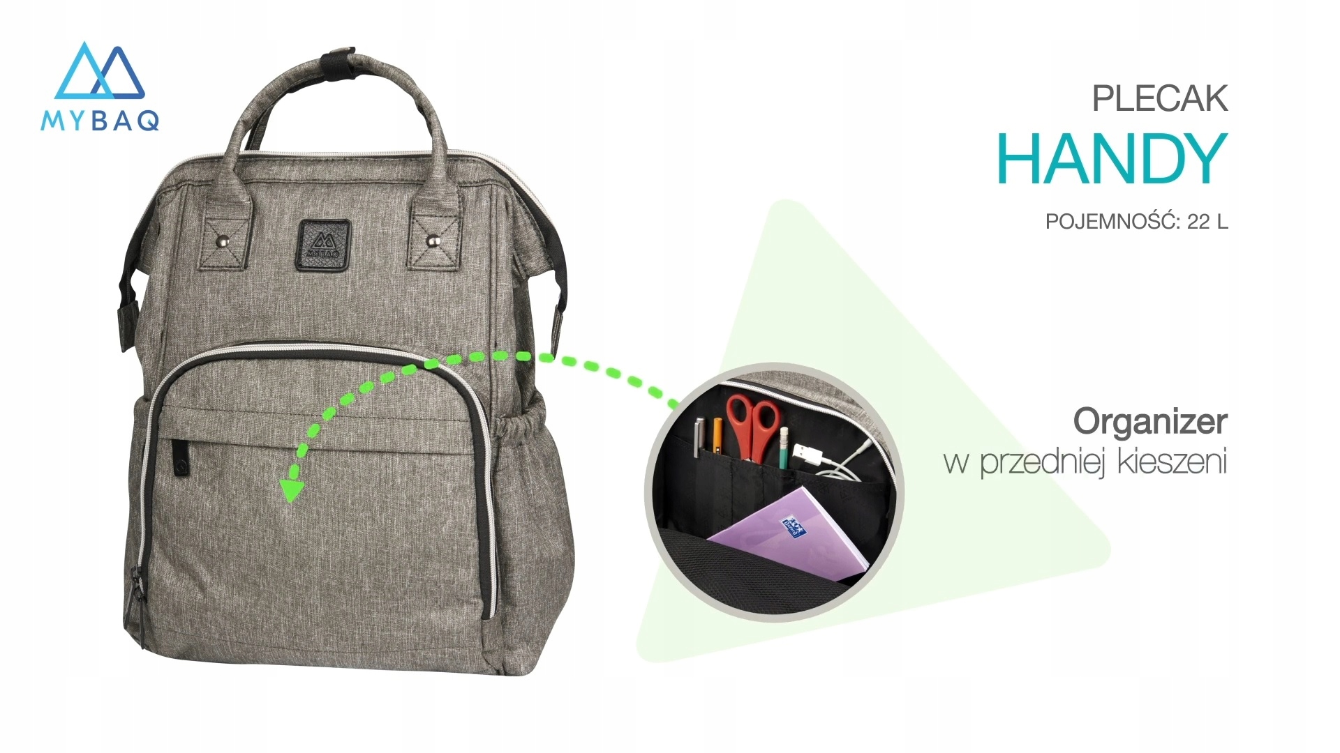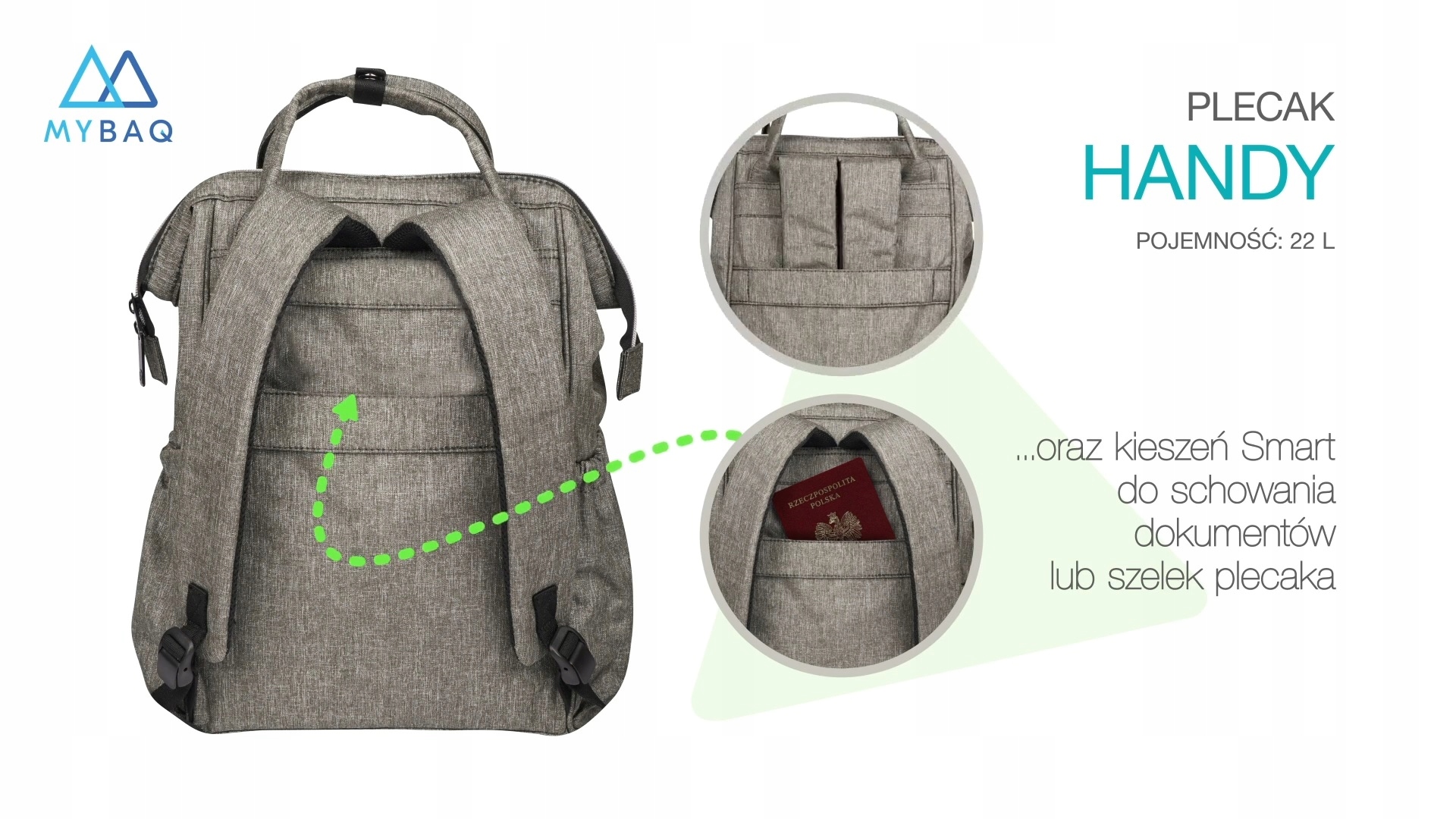 Handy — уникальная коллекция невероятно практичных и элегантных школьных рюкзаков. Широкий спектр использования означает, что рюкзак идеально подходит не только для школы, но и для работы или путешествия. Широкая молния и верхнее отверстие означают, что ничто не может выпасть из рюкзака незаметно, а извлечение больших форматов становится проще. В верхней части рюкзака имеются две ручки, которые придают рюкзаку дополнительную функциональность, превращая его функцию в стильную сумку.