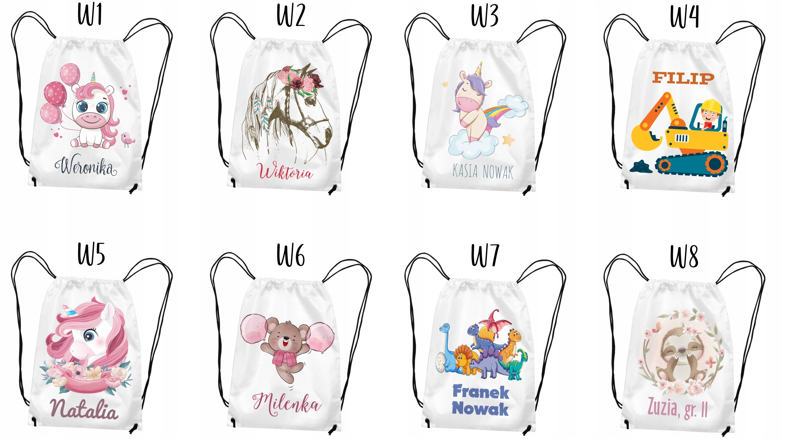 Именная белая сумка с именем или фамилией ребенка, идеальна для детского сада, школы или яслей.