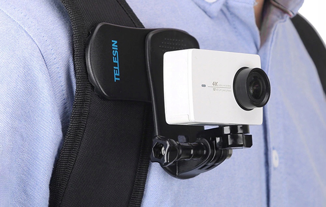 Крепление совместимо с широким спектром устройств. Используйте его, чтобы прикрепить к рюкзаку спортивные камеры, такие как GoPro Hero 8, 7, 6 или 5, а также DJI Osmo Action. Это также позволяет установить Xiaomi Yi. Аксессуар оснащен стандартным интерфейсом GoPro — для безопасного крепления камеры используйте отдельно приобретаемый водонепроницаемый футляр или футляр.