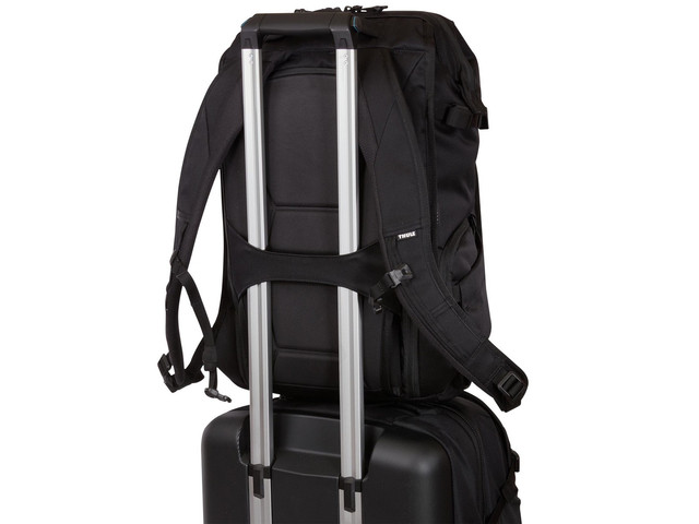 - Специальная панель позволяет легко прикрепить рюкзак к багажу на колесах.