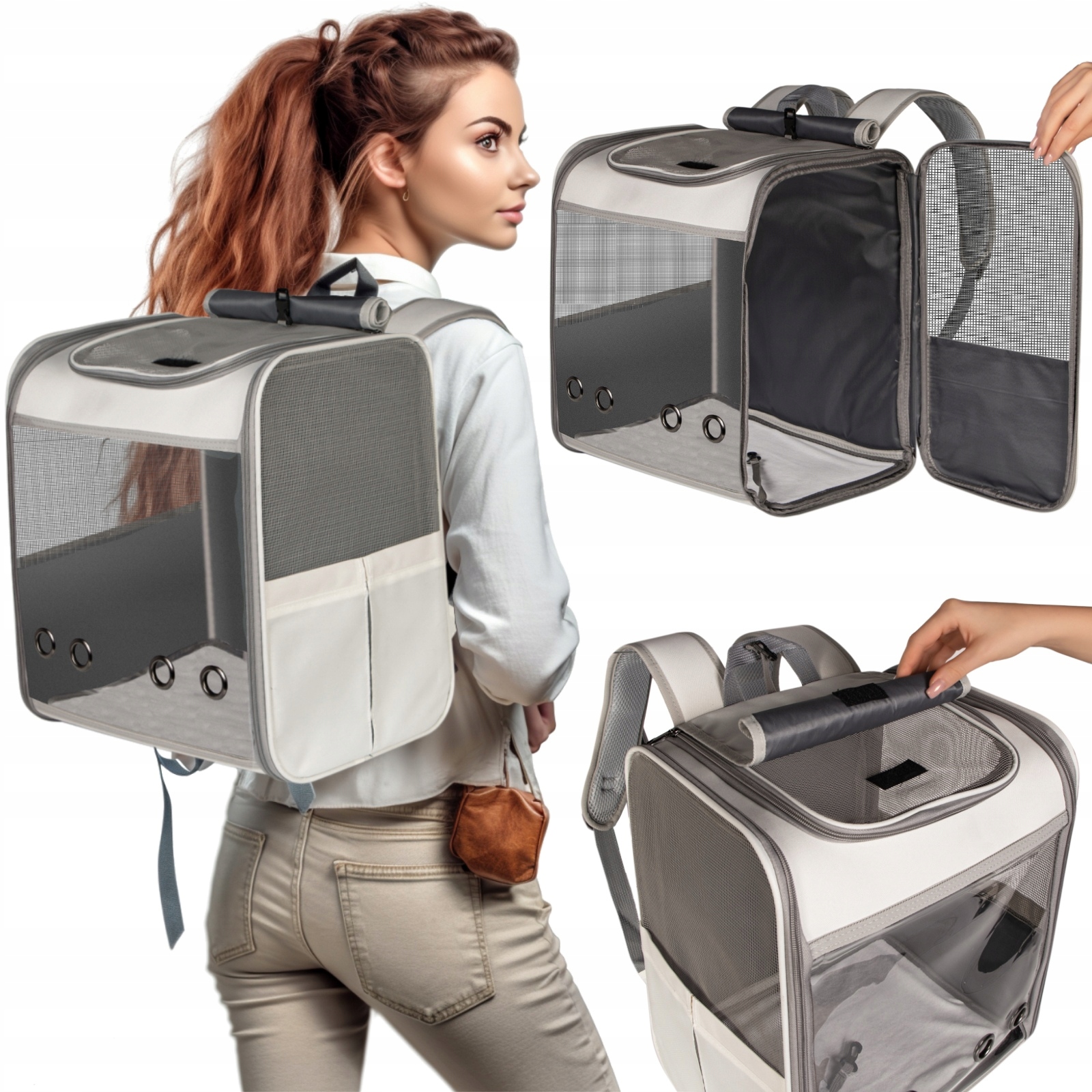 РЮКЗАК ТРАНСПОРТНИЙ ДЛЯ КОТА АБО СОБАКИ, КВАДРАТНИЙ, СІРИЙ, ДУЖЕ ЗРУЧНИЙ