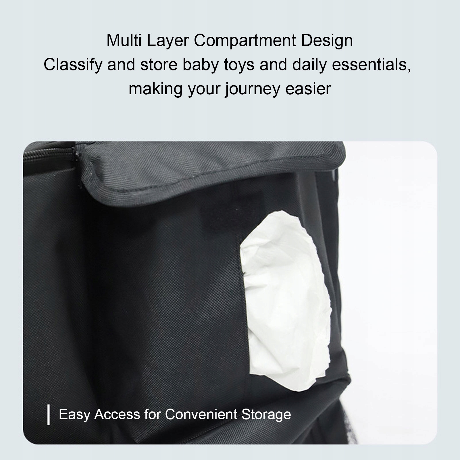 5. Удобные полосы и ручка: содержащие удобные плечевые ремни и сплошная ручка, этот пакет для хранения троллейбуса уменьшает груз руки, обеспечивая легкость нести занятых родителей.