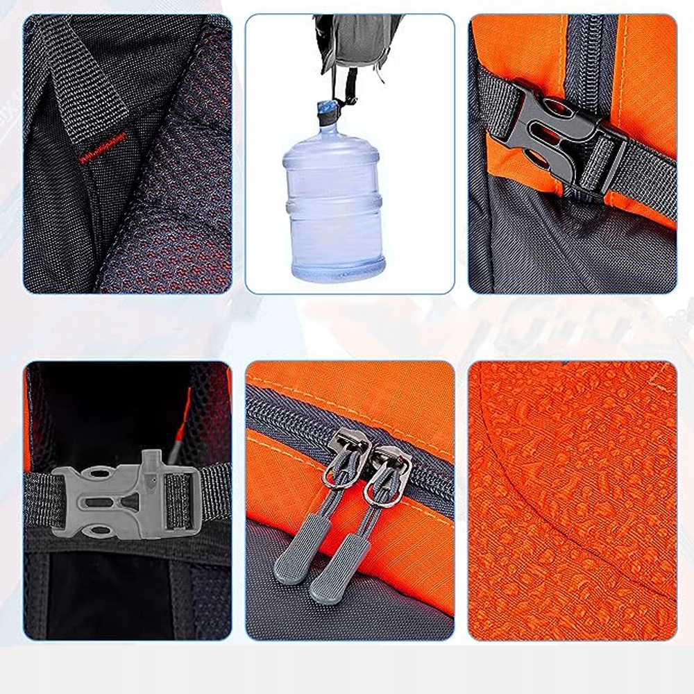 - 🟠 Боковые и передние регулируемые ремни для подвешивания трекинговых палок, штативов или чего-либо еще.