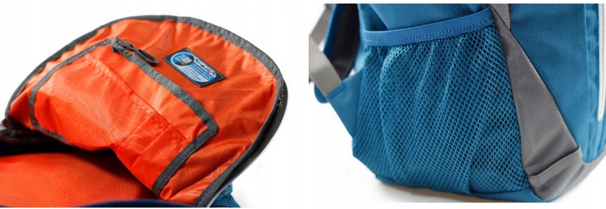 - карманы: боковые - сетчатые, открытые, задние - закрываются на молнию, пришиты к отделению. Дополнительно к корпусу пришит ленточный крючок