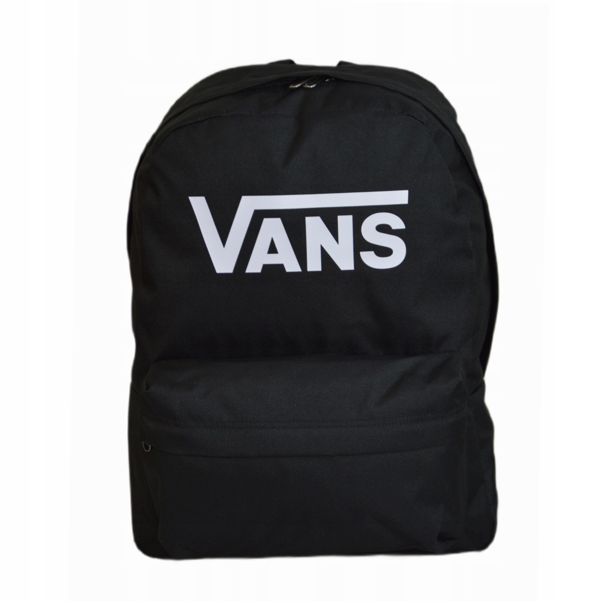 На передней части рюкзака напечатан большой белый логотип VANS.