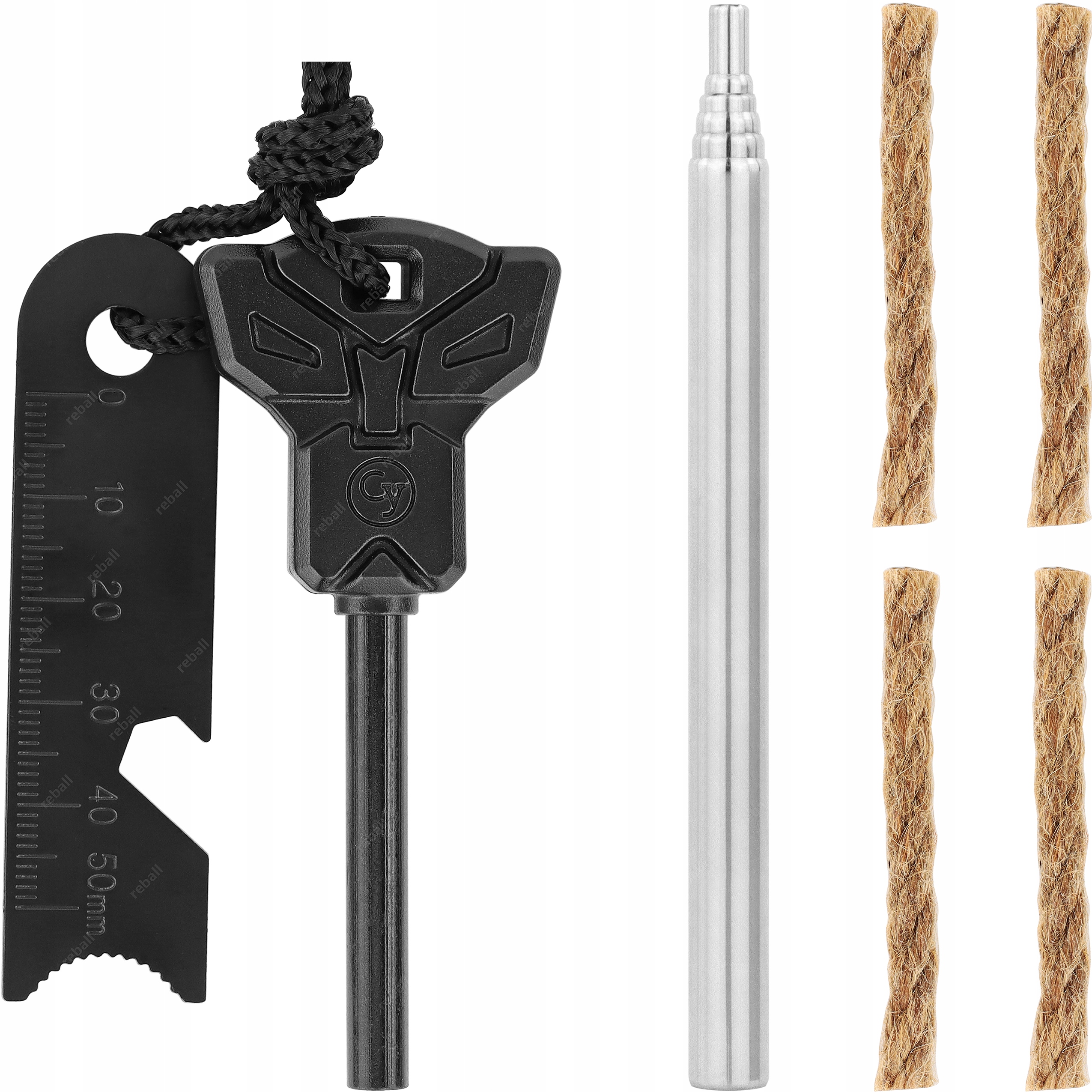 - Магниевый поджигатель: Обеспечивает надежный и эффективный способ разжигания огня в любых условиях, даже во влажных условиях. или в ветреную погоду.