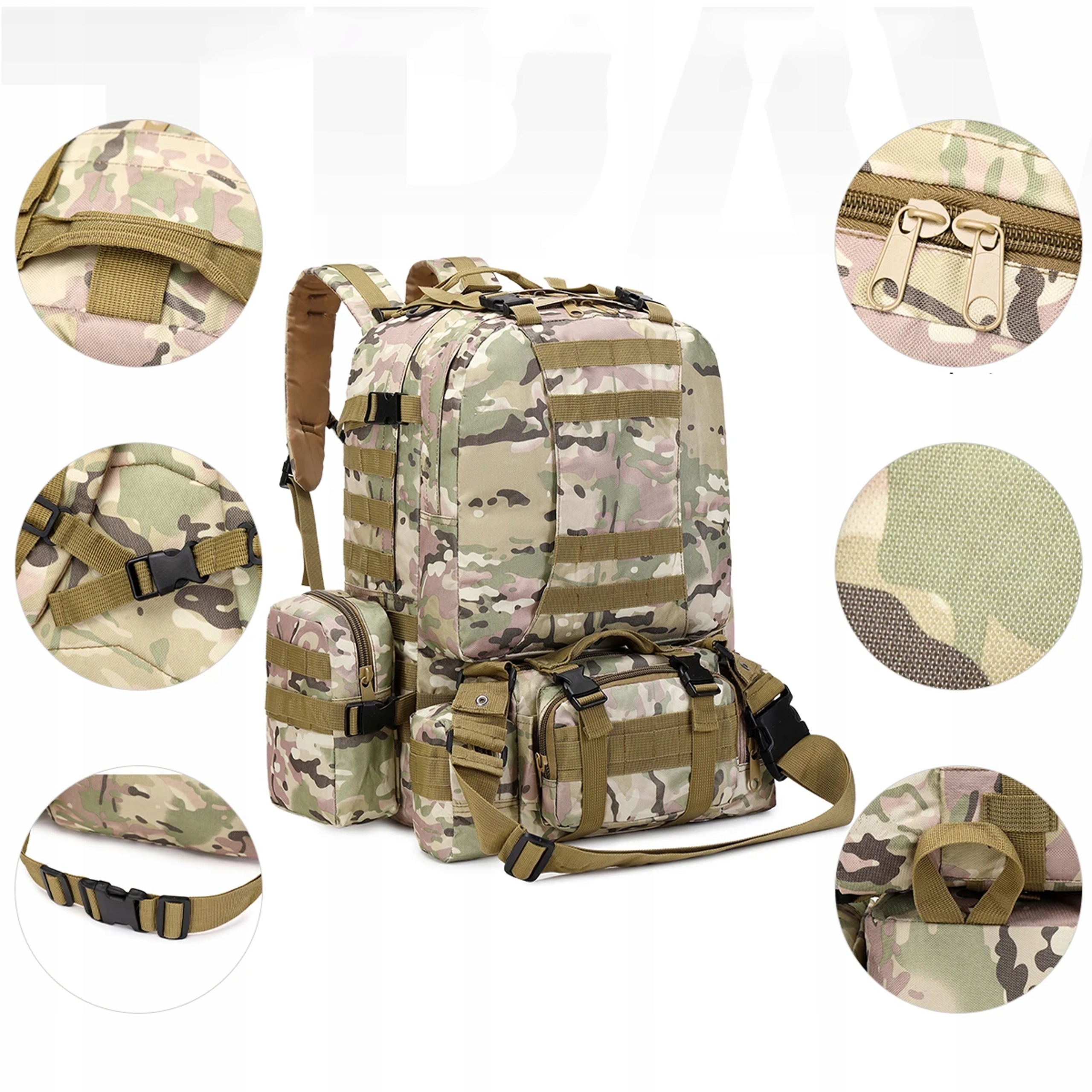 Функциональный и надежный, оснащен отделениями и карманами, закрывающийся на молнии, идеальный рюкзак для универсального использования: города, выживания, военного дела и туризма.