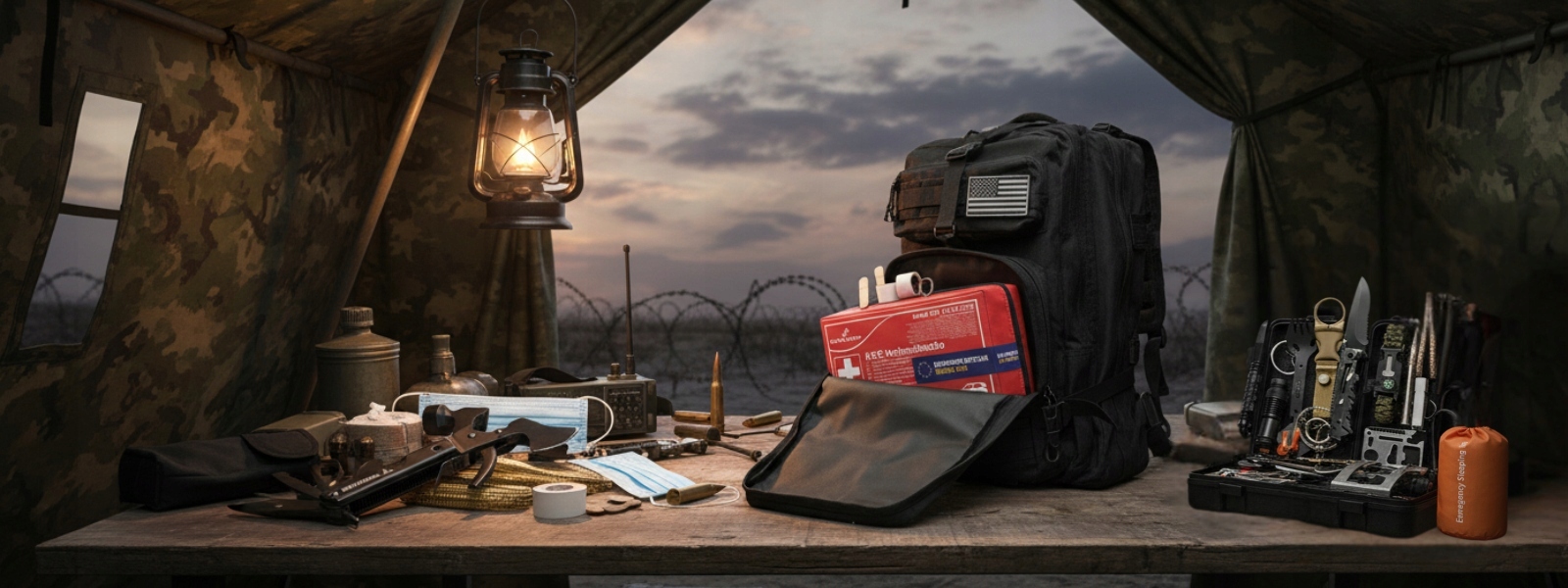 НАБОР ДЛЯ ВЫЖИВАНИЯ 70 В 1 С МУЛЬТИТУЛЬНЫМ РЮКЗАКОМ, АПТЕЧКОЙ ПЕРВОЙ ПОМОЩИ, СПАЛЬНЫМ МЕШКОМ