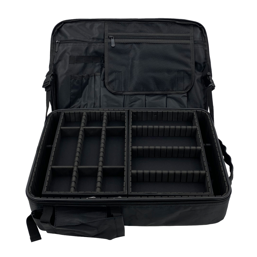 - Множество карманов и отделений для ножниц, машинок для стрижки, расчесок, щеток, и т. д.