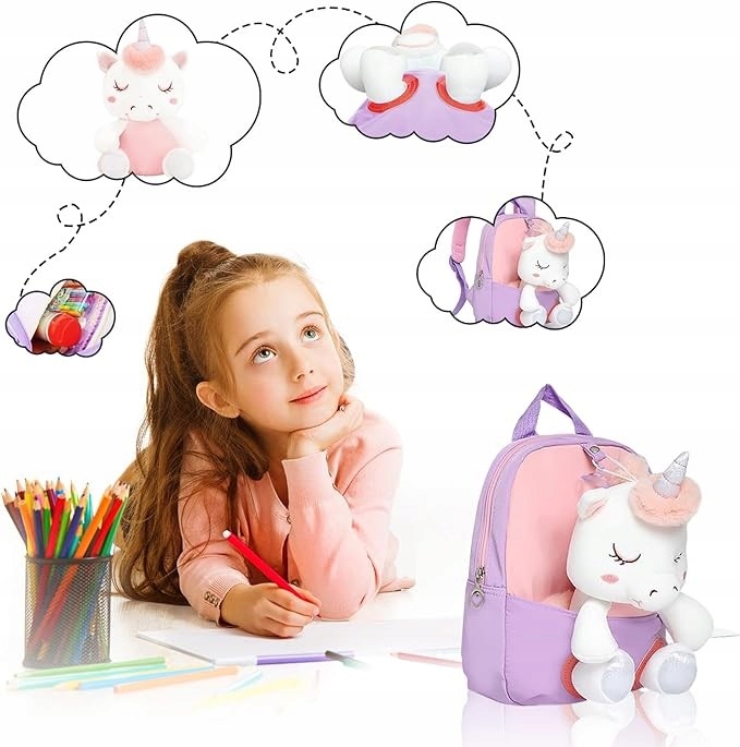 - Вы знаете, что рюкзак может стать лучшим другом вашего малыша? Наш плюшевый рюкзак с плюшевым талисманом Unicorn является настоящим сокровищем для каждого дошкольника! Талисман прикреплен к дополнительной ручке сверху.