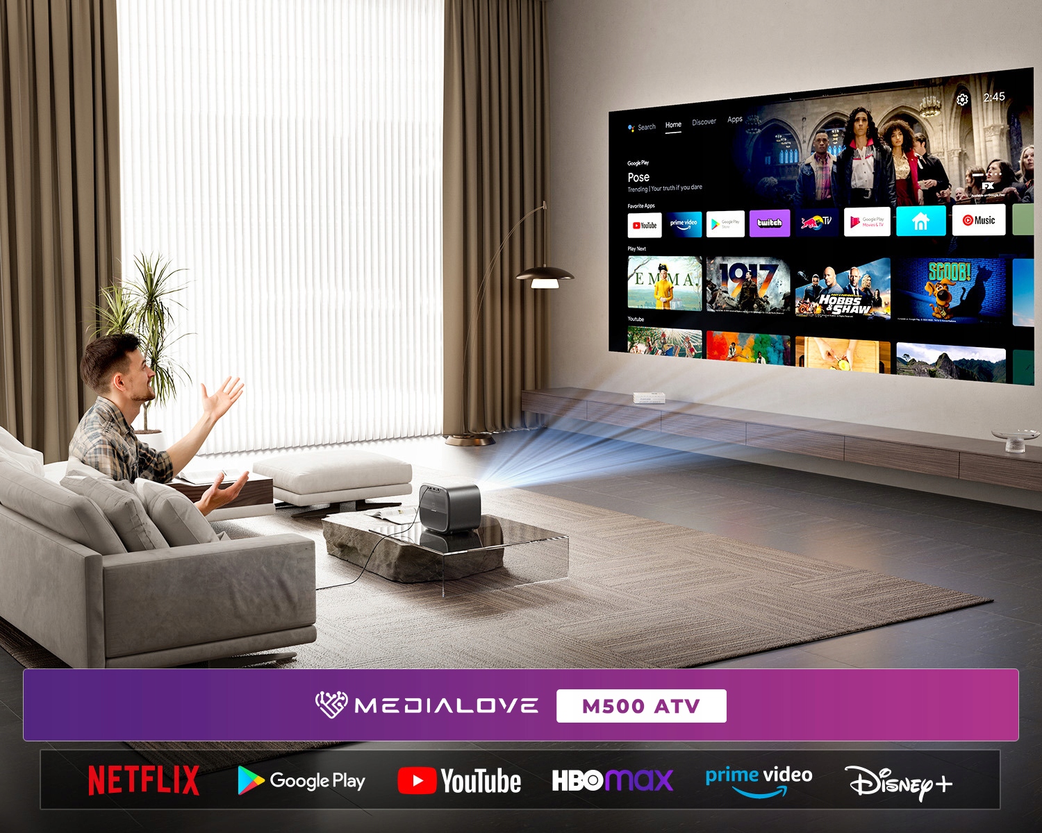 ✅ Откройте для себя домашний кинотеатр с помощью светодиодного проектора Medialove M500 ATV Android TV 11 + AF