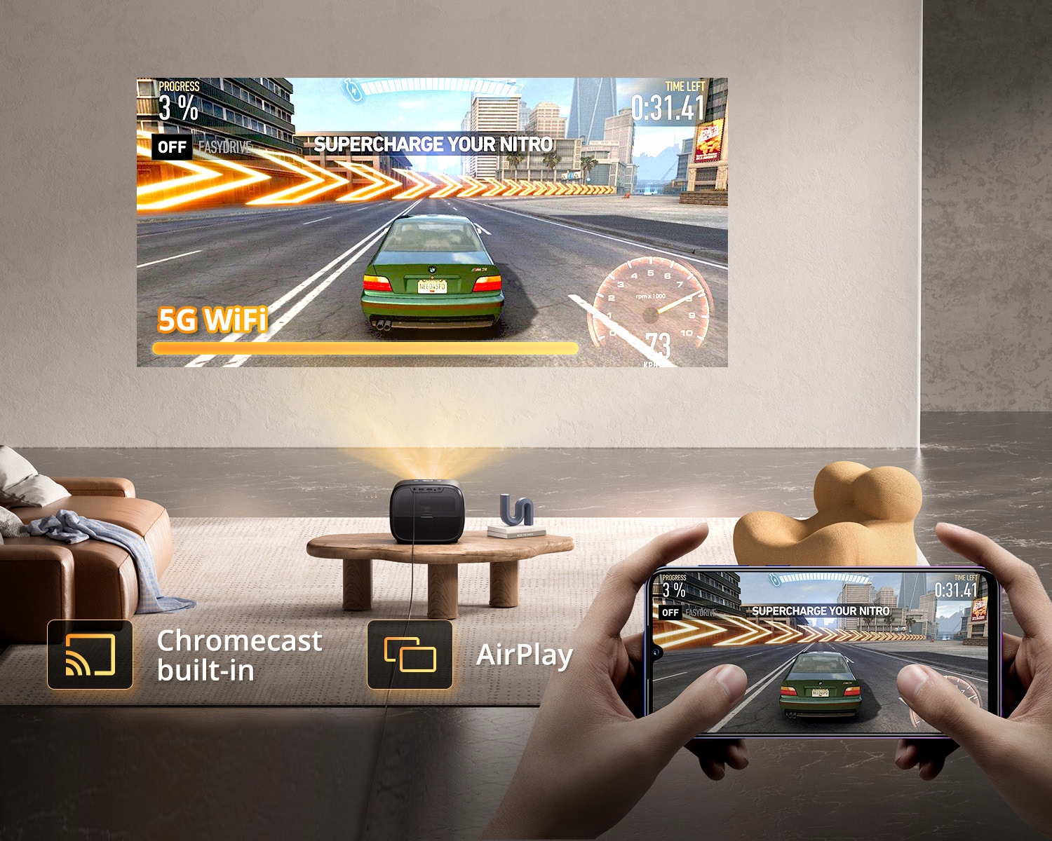 ✅ Быстро подключайтесь к потоковым приложениям с устройств Android и iOS: с помощью Chromecast или других доступных приложений вы можете легко перенести изображение со своего телефона на проектор, который позволит вам играть в игры на большом экране и просматривать фотографии.