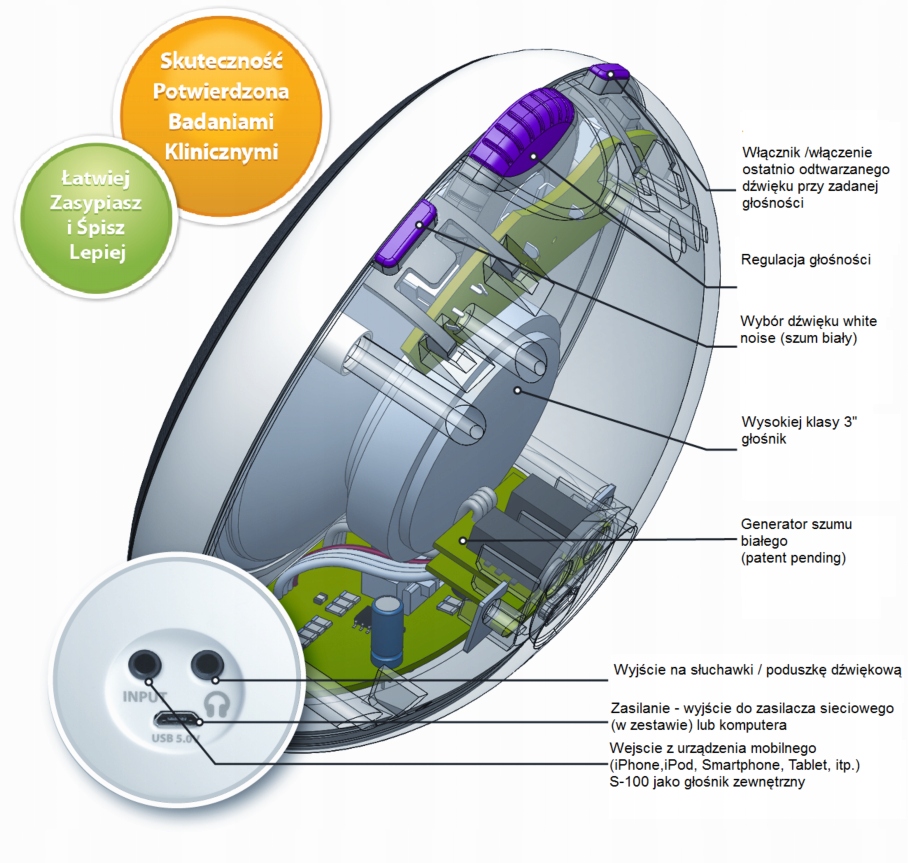S-100 — это инновационный компактный генератор белого шума, предназначенный для людей с проблемами засыпания, шумом в ушах и повышенной чувствительностью слуха. Его также можно использовать в качестве внешнего динамика для ваших мобильных устройств (ноутбука, iPhone, iPod, смартфона, планшета и т. д.).