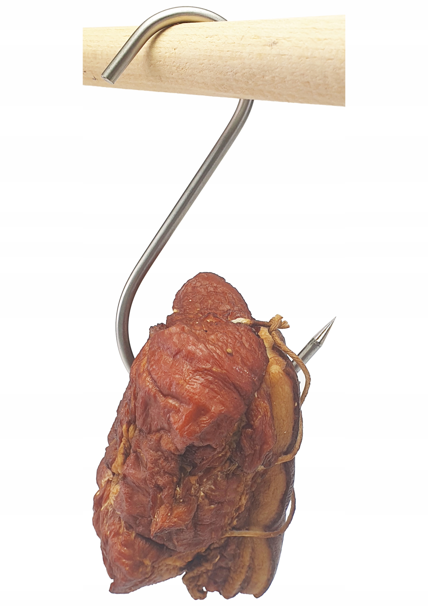 Предлагаю большие и очень прочные крючки для копчения различных видов мяса и колбасных изделий. Грузоподъемность крюка – до 18 кг. На такой крючок без проблем можно повесить крупную свинину, говядину или полутушу.