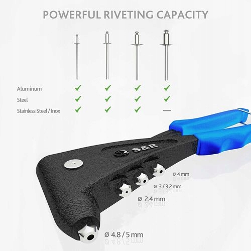 Заклепочник S&R для одной руки, с алюминиевым корпусом + 120 заклепок.