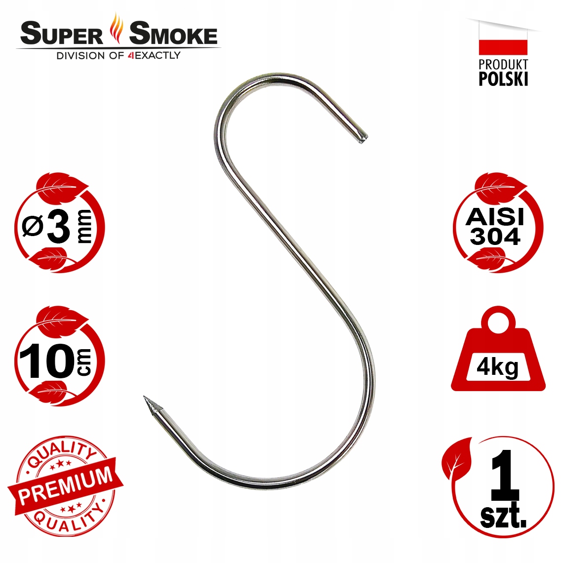 Крюки с супер дымом изготовлены из аустенитной нержавеющей стали - не магнитной стали. Это продукты, которые содержат: