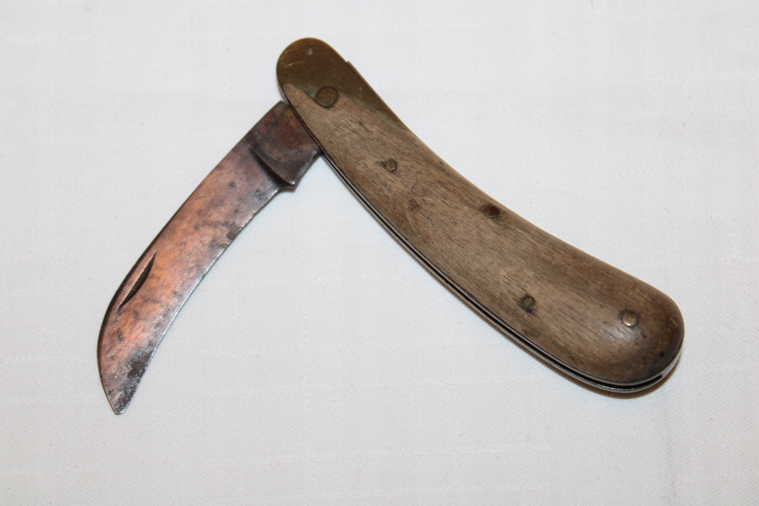 Старый использованный нож Sierpak, подписанный, поврежден одну деревянную облицовку, латунные проставки, размер сложенного 11 см.