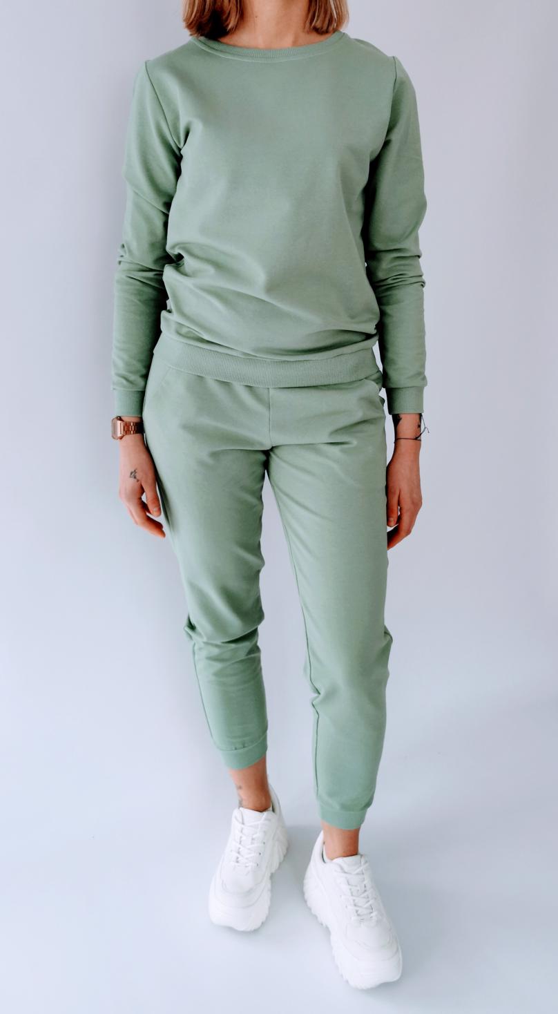 - Классика со слегка приталенным свитшотом без капюшона и брюками с карманами.