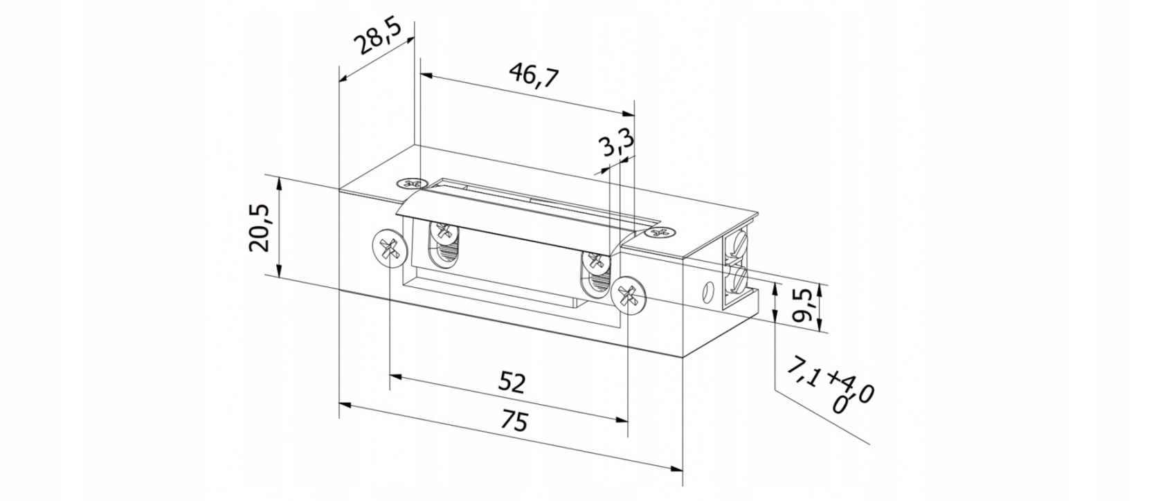 - размеры: ширина 20,5мм, высота 75мм, глубина 28,5мм,