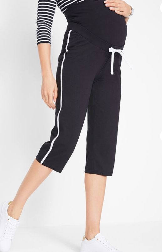 Оригинальные брюки для беременных из коллекции Bonprix, вырезать и цвета, как на картинках под описанием- черный с белыми лампами вдоль ног. Бесплатный, пот срез , с упругим ремнем на животе, со ступенями на жевательной режиме. Ноги с длиной ЕС 36/38, Скорее 38 - они, кажется, довольно просторные/размеры в CM, измеренные плоские/
