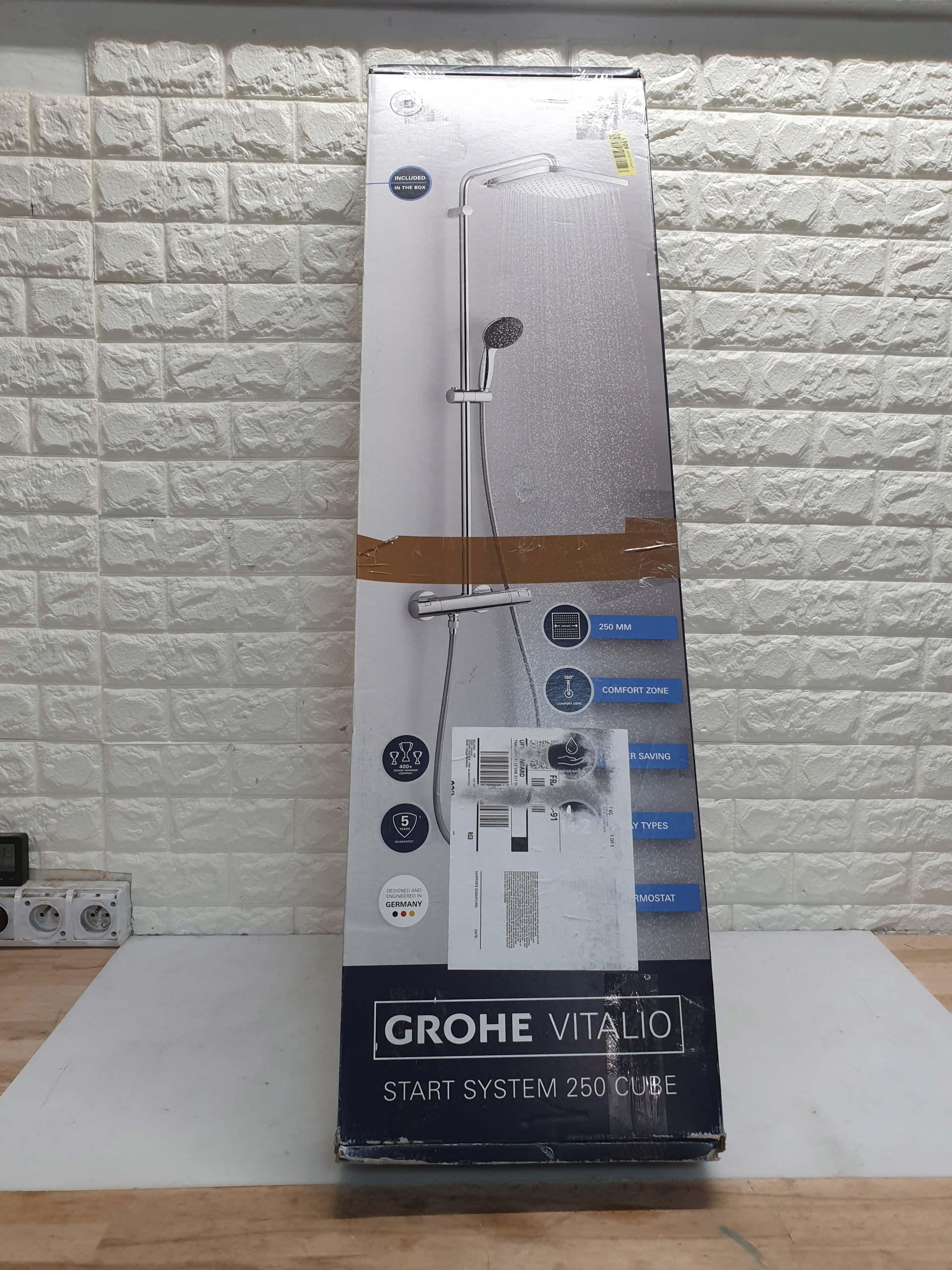 С душевой системой GROHE Vitalio 250 Cube вы заново откроете для себя, что значит удовольствие от принятия ванны. Его «сердцем» является элегантный термостатический смеситель, который будет поддерживать выбранную вами температуру воды, благодаря чему существенно повысится комфорт и безопасность принятия душа. Чтобы еще больше увеличить ее, на ручке смесителя имеется специальный фиксатор, который не дает вам случайно установить слишком горячий поток, защищая вашу нежную кожу от неприятных ожогов. Это решение особенно оценят все, кто ухаживает за маленькими детьми или пожилыми людьми.