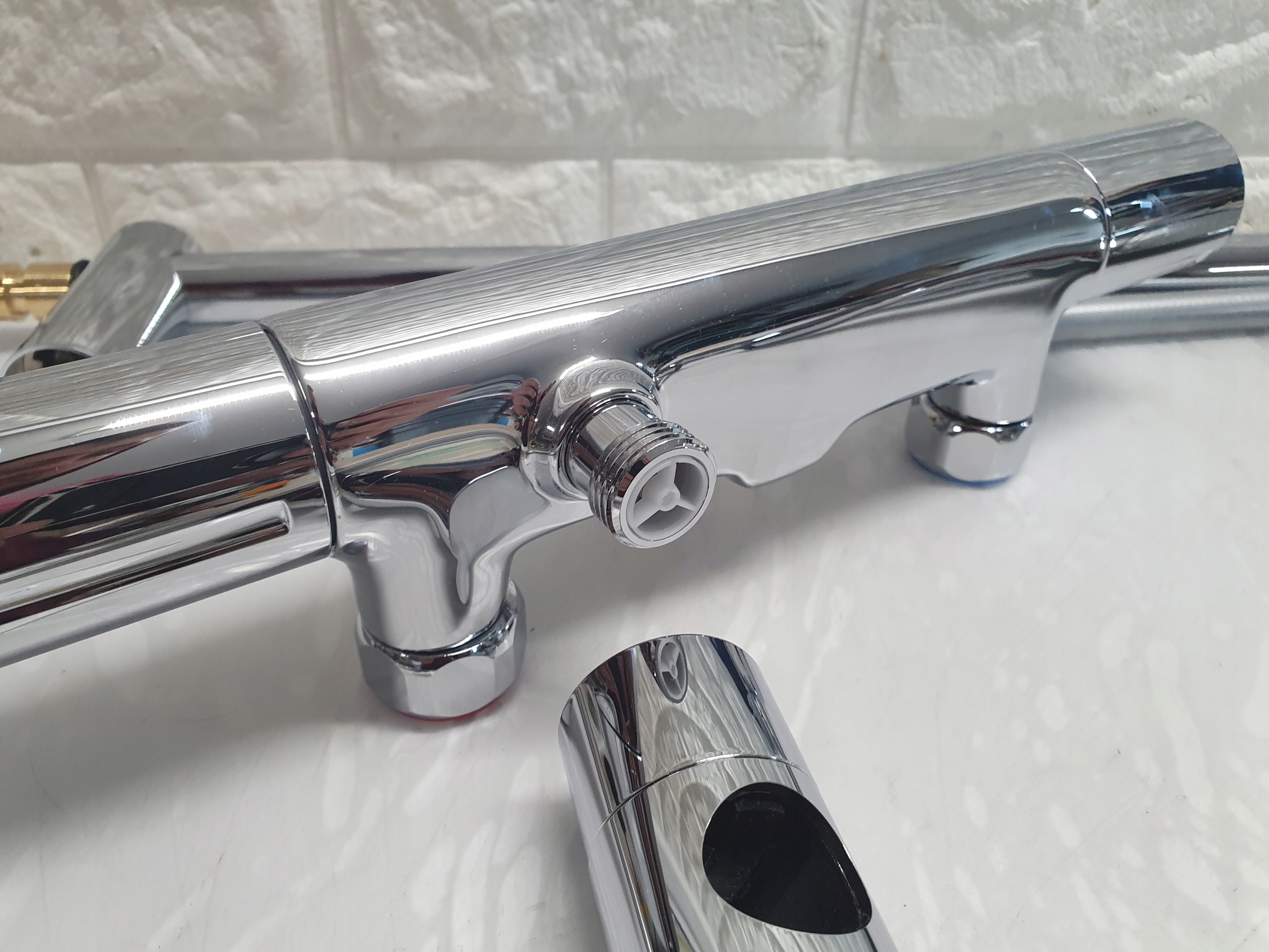 С душевой системой GROHE Vitalio 250 Cube вы заново откроете для себя, что такое удовольствие от принятия ванны. Его «сердцем» является элегантный термостатический смеситель, который будет поддерживать выбранную вами температуру воды, благодаря чему существенно повысится комфорт и безопасность принятия душа. Чтобы еще больше увеличить его, на ручке смесителя имеется специальный фиксатор, который не дает вам случайно установить слишком горячий поток, защищая нежную кожу от неприятных ожогов. Такое решение особенно оценят все, кто ухаживает за маленькими детьми или пожилыми людьми.