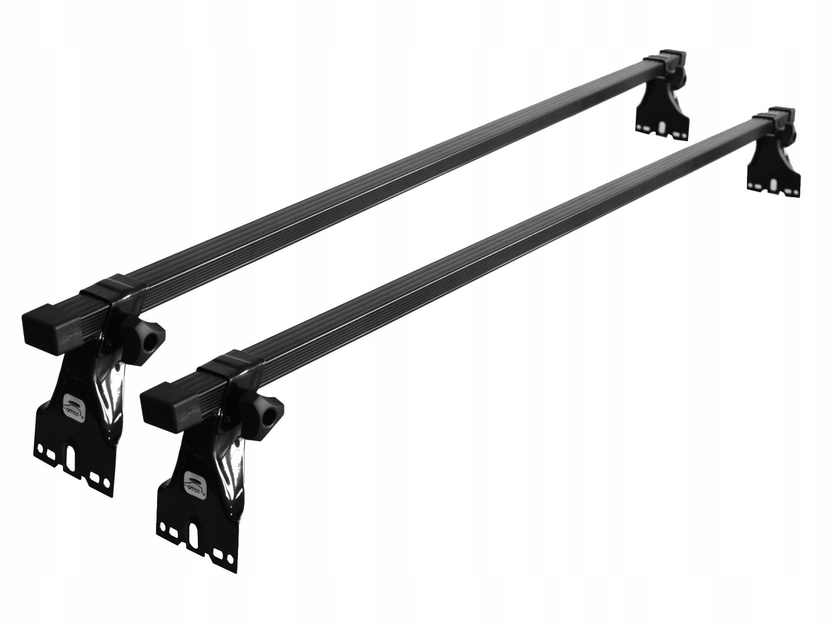 Представленный ствол состоит из твердых, стальных лап, которые обеспечивают долговечность монтажа на крыше автомобиля и двух стальных балок (в черной буферной зоне ПВХ, закрытый профиль) с прямоугольным крестом (32x20 мм ). Весь набор в универсальном черном цвете. Ствол, предназначенный для замораживания автомобилей, где на стороне крыши под уплотнениями есть заводские резьбы.