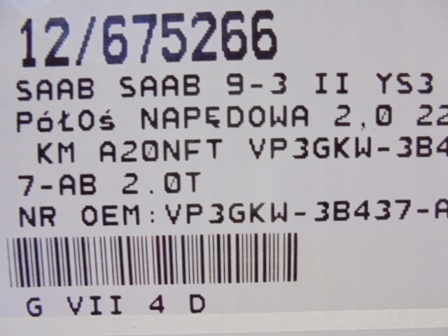 SAAB 9-3 II Половина VP3GKW-3B437-AB 2,0T
