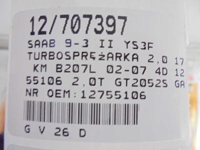 SAAB 9-3 II YS3F Турбокомпрессор 127555106 2.0T