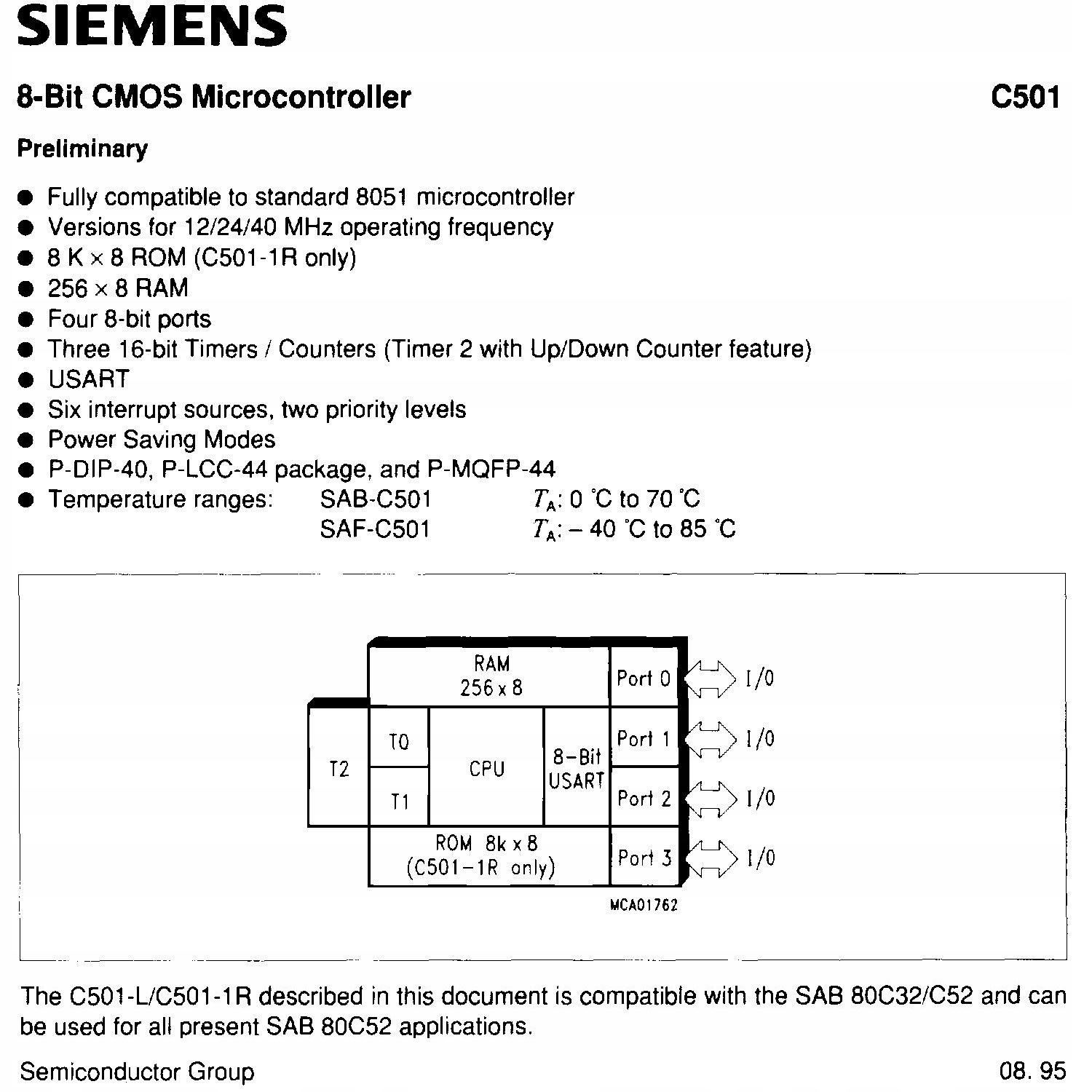 Микроконтроллер SAB-C501-2R24N, 8 бит, 24 МГц