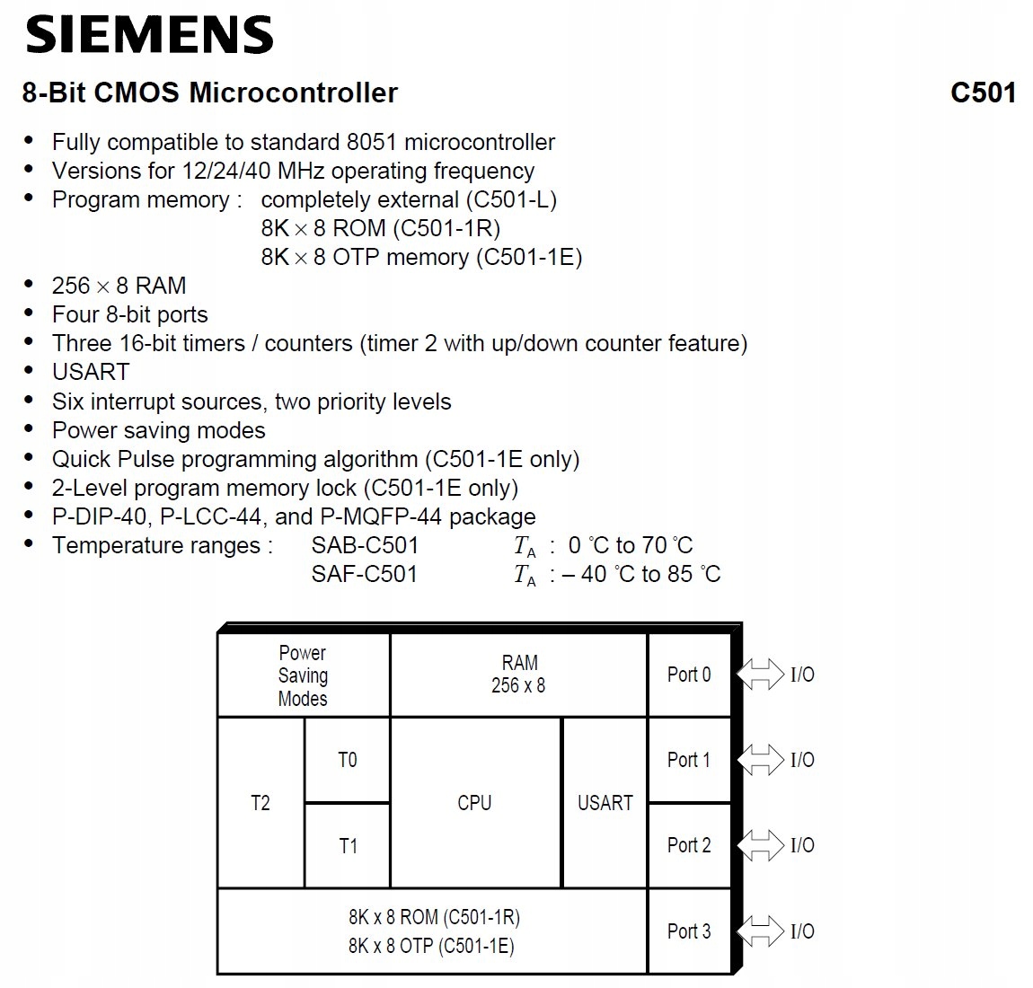 Микроконтроллер SAB-C501-LP 8 бит, 12 МГц
