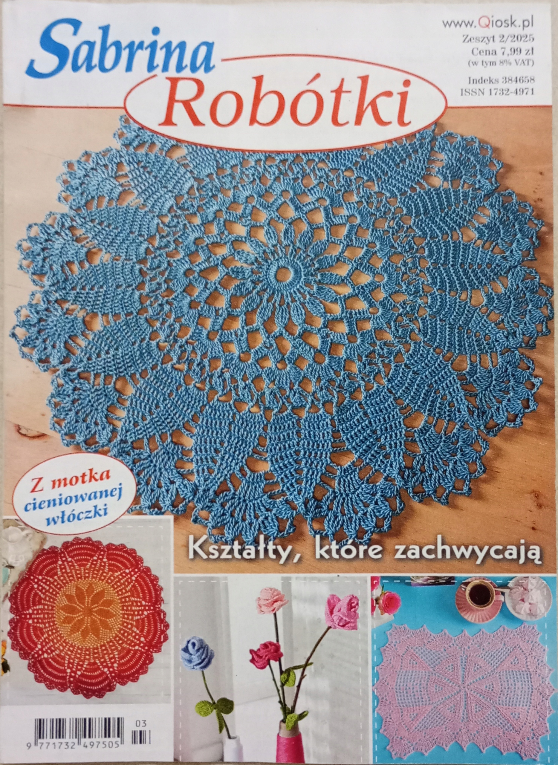 Sabrina Robotki 2/2025 — это издание, полное вдохновляющих схем вязания крючком, которые идеально дополнят современный дизайн интерьера вашей квартиры. В этом выпуске вы найдете, среди прочего: . круглые салфетки джинсового цвета, белая прямоугольная кружевная дорожка для стола с красными деталями и двухцветные салфетки. Кроме того, доступен розовый комплект с узором «пицца», создающим симметричные треугольные мотивы и веерное кружево.