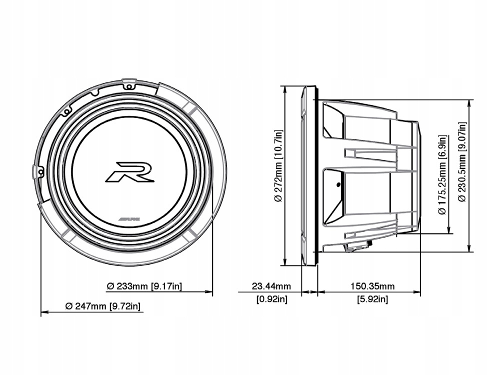 - 10-дюймовый сабвуфер DVC серии R2 с косметическим отделочным кольцом