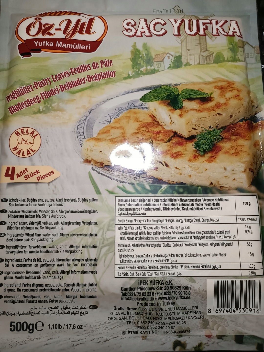 SAC YUFKA 4 ADET 500 Г ТУРЕЦЬКИЙ ТОРТ FILO FOR BORGS