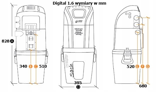 - Центральный пылесосSach Vac Digital 1.6 с цифровым наборомимеет корпус из качественных, влагостойких материалов.