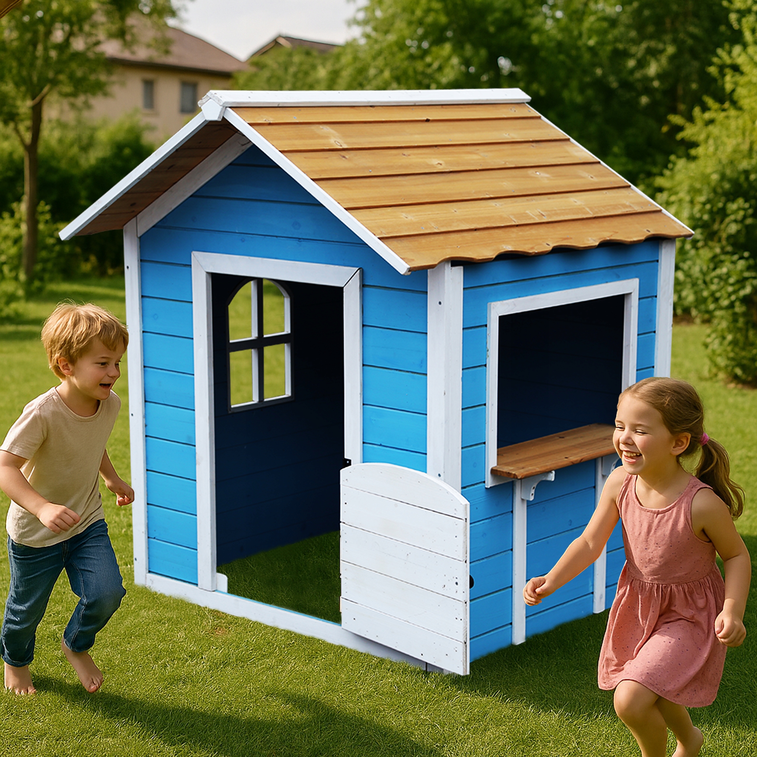 Этот очаровательный, синий дом - идеальное место для игры, отдыха и развития детского воображения. Благодаря вдумчивому дизайну и эстетическим деталям, он хорошо сочетается с садом, создавая творческое убежище для самых молодых.