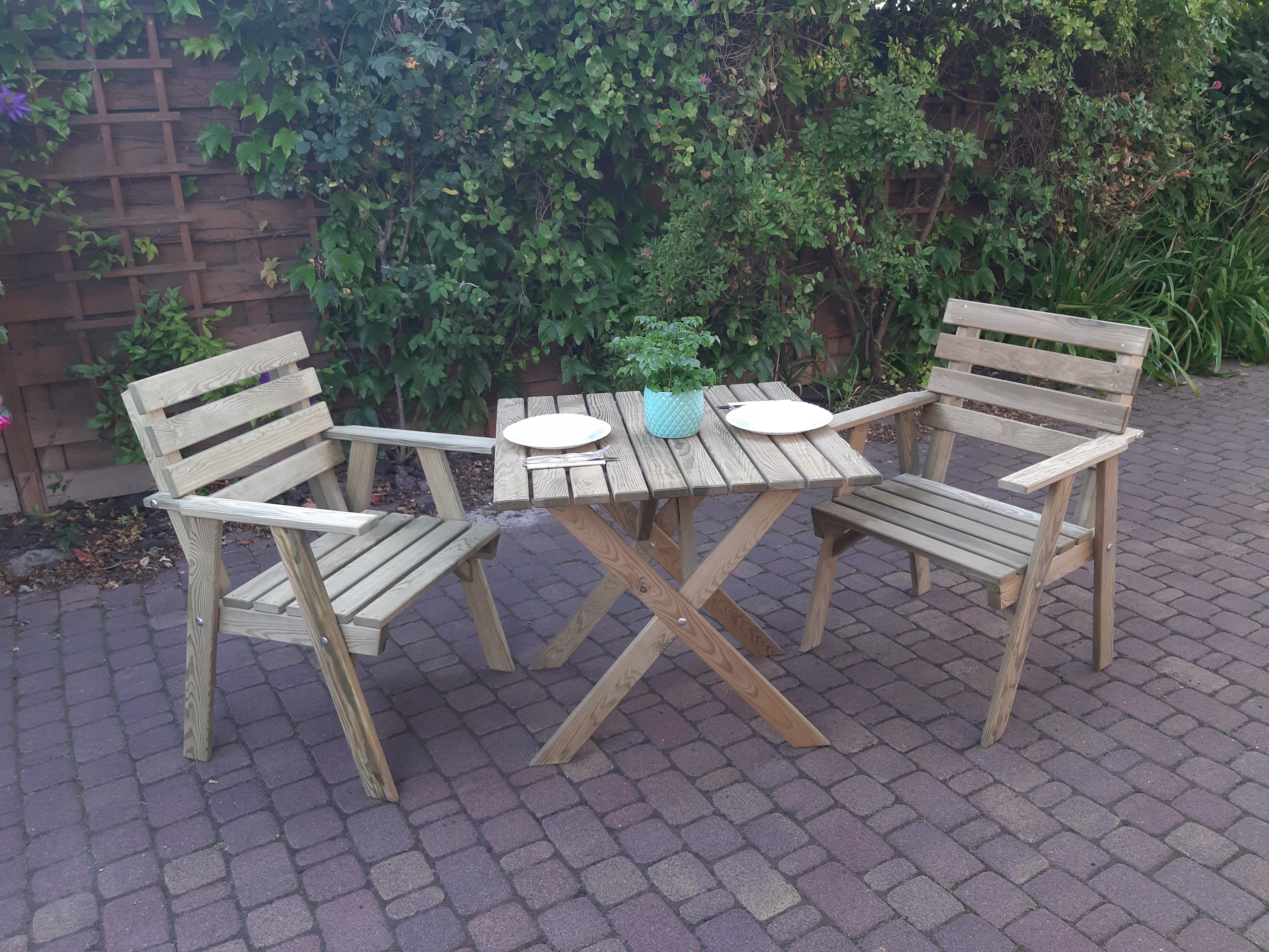 Новый – не требует дополнительной покраски для защиты древесина. В зависимости от степени воздействия на древесину вредных внешних условий мебель рекомендуется через 1-2 года повторно пропитать любым средством, предназначенным для пропитки древесины на открытом воздухе. Чтобы теперь придать ему другой цвет, его можно дополнительно покрасить самостоятельно. Любой более темный цвет после пропитки покроет светло-зеленый оттенок.