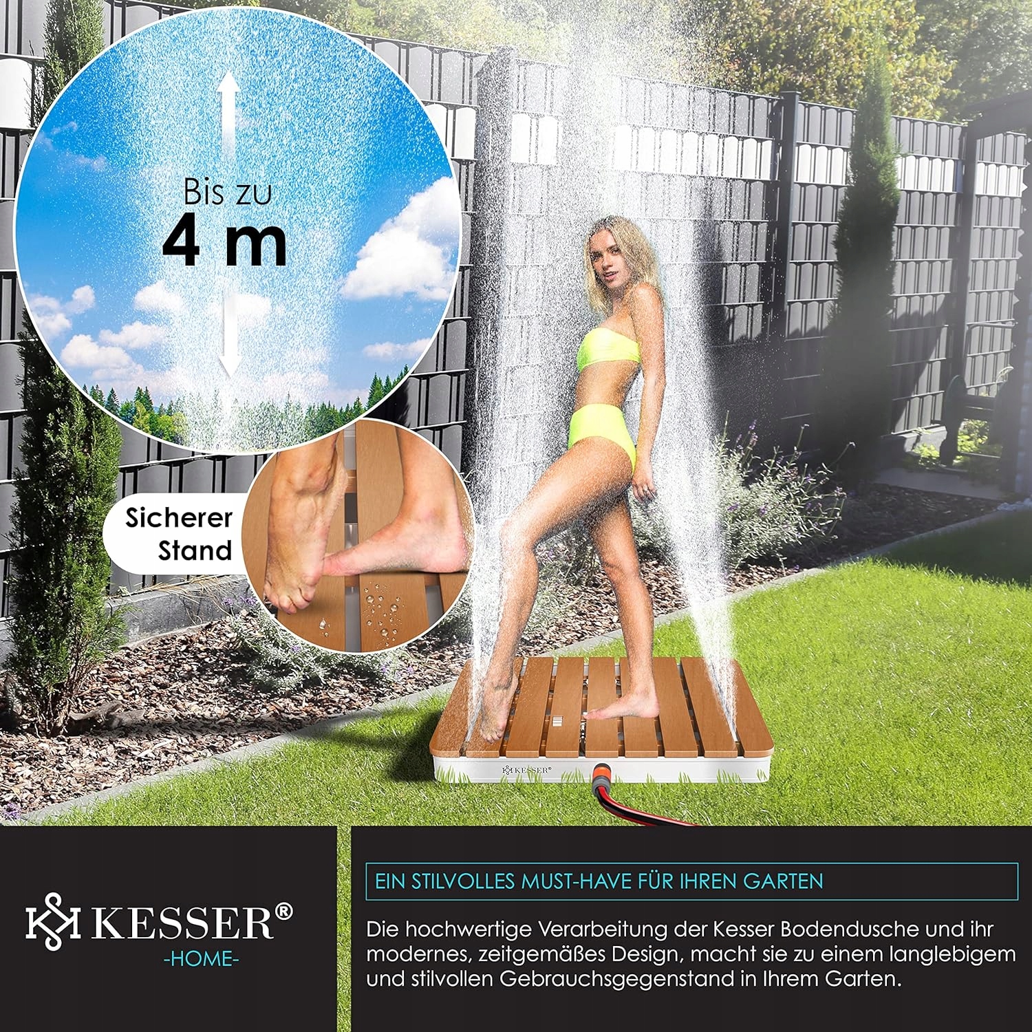 Максимальный комфорт обеспечивает встроенное ножное колесо, благодаря которому можно не только включать и выключать водные струи, но и также отрегулируйте высоту до 4 метров. Наступая на душевую поддон Kesser, вы можете активировать ногой водяной клапан, благодаря чему вода для душа направляется через форсунки, расположенные в верхней части напольного душа.