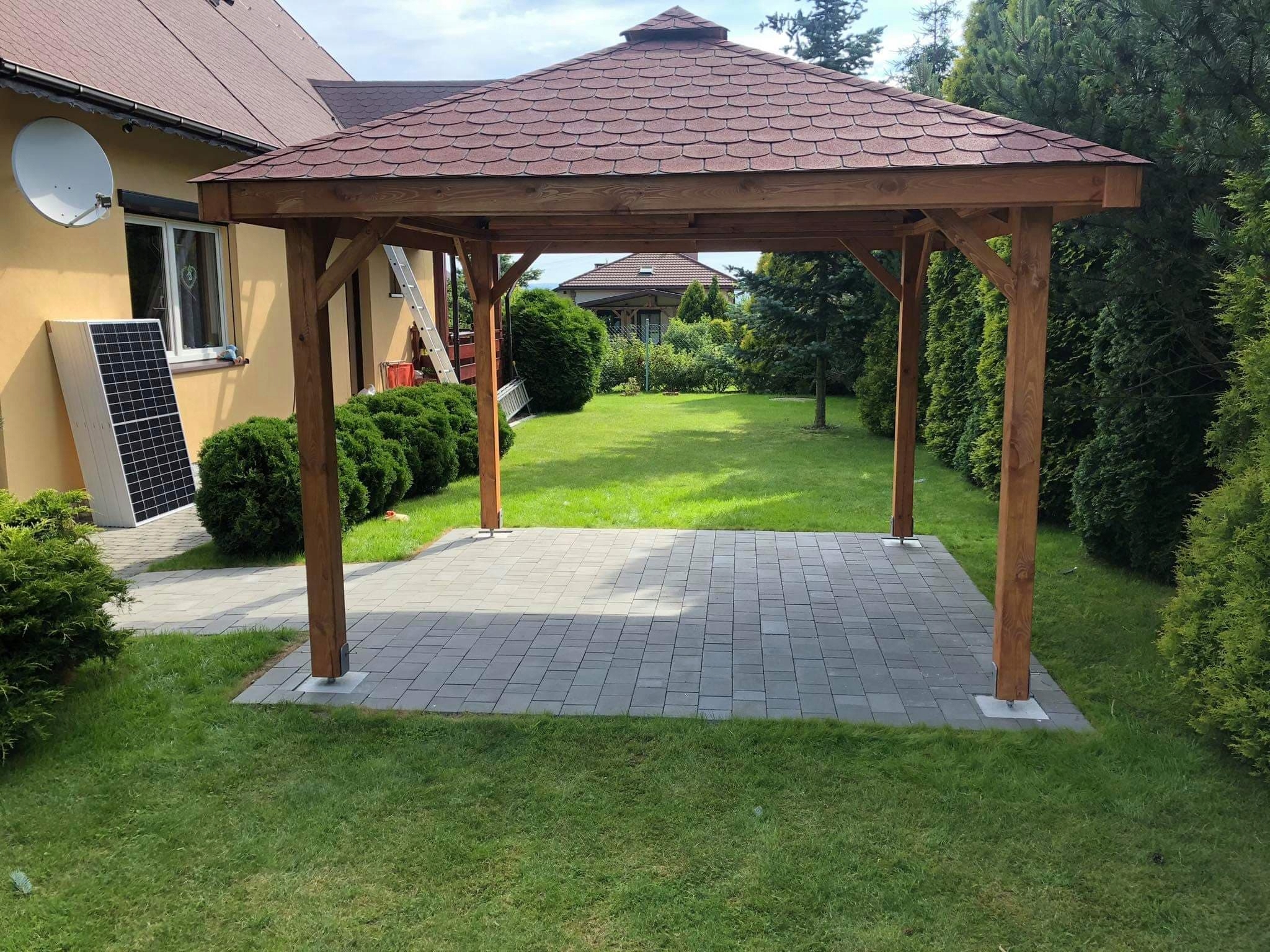 Садовая беседка Аня — наше самое скромное предложение среди широкого ассортимента садовых беседок. Конструкция основана на прочных несущих колоннах, что делает ее не только идеальным местом для барбекю и отдыха, но и потенциально полезным в качестве навеса для машины, если мы решим увеличить ее размеры. Благодаря этому беседка становится универсальной и приспособленной к различным нуждам. В стандартной комплектации он оснащен массивными опорными стойками размером 12x12, обеспечивающими его устойчивость. Независимо от бюджета, беседка Ани — привлекательное предложение для каждого