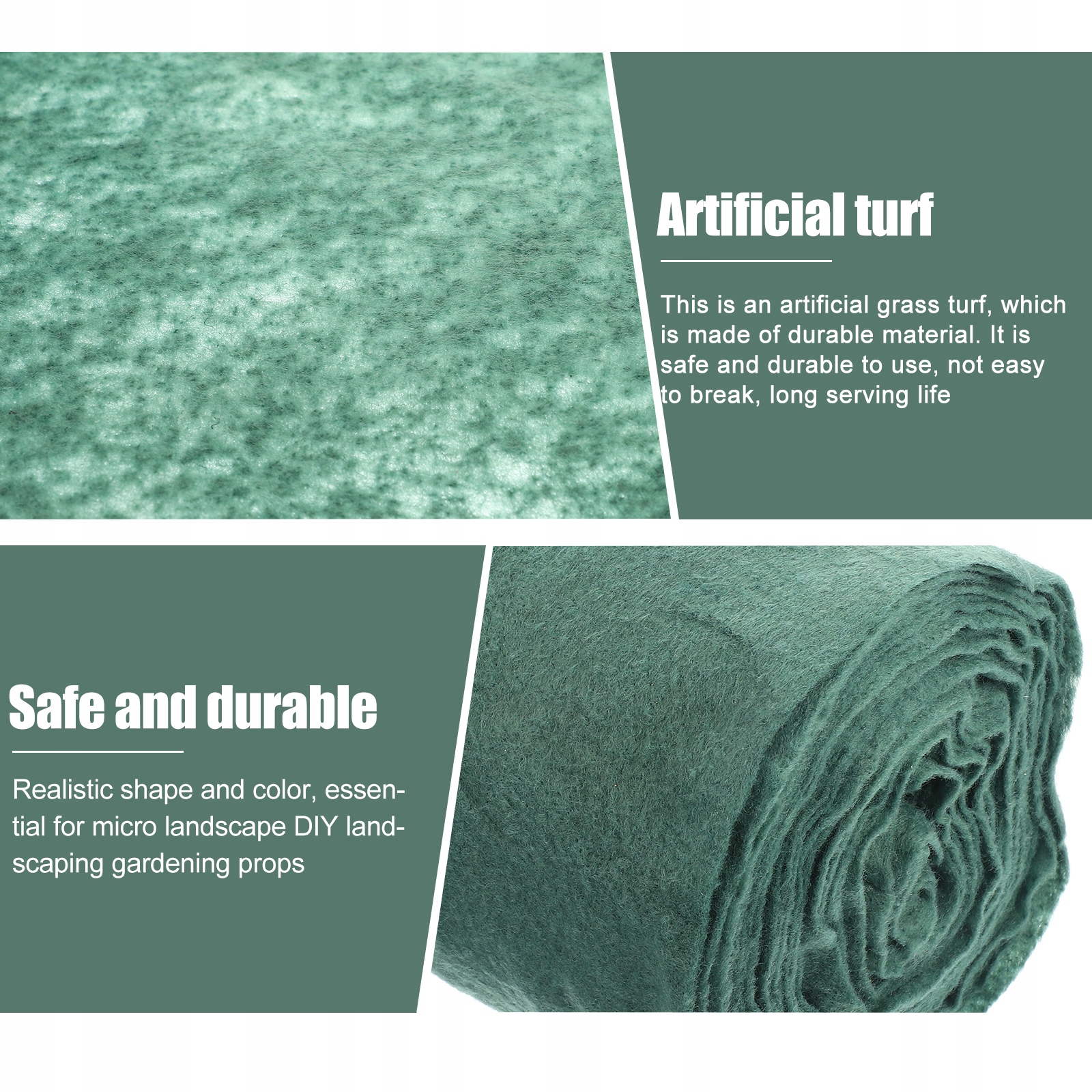 Это искусственный газон из прочного материала. Он безопасен и долговечен в использовании, его нелегко сломать, длительный срок службы. Он выглядит естественно и не выгорает на солнце или под дождем. Этот коврик, имитирующий траву, можно использовать на открытом воздухе в течение длительного времени.