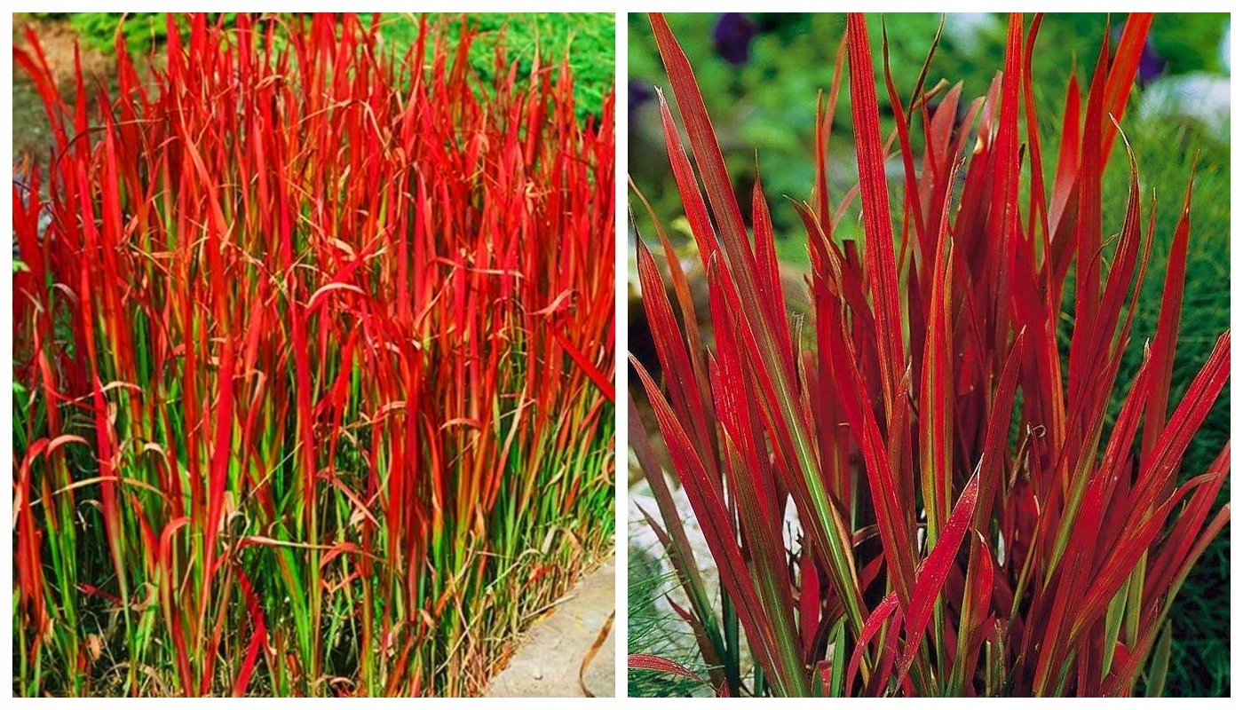 ⭐Imperata cylindrica RED BARONлат. Imperata cylindrica 'RED BARON ⭐ вырастает до 40-50 см в высоту. Он растет довольно медленно. Этот сорт поистине уникален среди декоративных трав, так как является одним из немногих сортов с такой уникальной окраской листьев, которая становится более интенсивной в конце сезона. Сначала они зеленые, но позже приобретают красивый, характерный красный оттенок. Осенью он становится еще более насыщенным фиолетовым цветом. В наших климатических условиях практически не цветет (поэтому не завязывает семян). Этот сорт можно выращивать в приусадебных и усадебных садах, в общественных озеленениях и в контейнерах, украшающих балконы и террасы. Очень эффектно смотрится в больших односортовых группах, расположенных, например, в виде арки или длинной ленты, пересекающей клумбу.