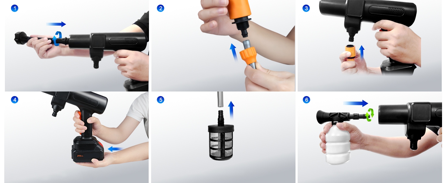 - можно переключать между шестью режимами душа (0 °, 15 °, 25 °, 40 °, режимом вентилятора и душа), чтобы удовлетворить различные потребности в поле чистки.