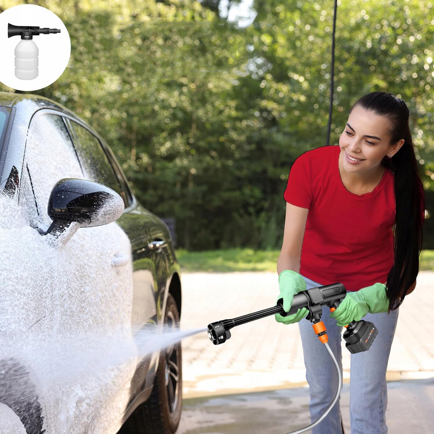 - работает на любой поверхности, что позволяет легко выполнять деликатные чистящие задачи, такие как мыть автомобиль, а также более сложная работа, например, Удаление постоянной грязи с террасов и заборов.