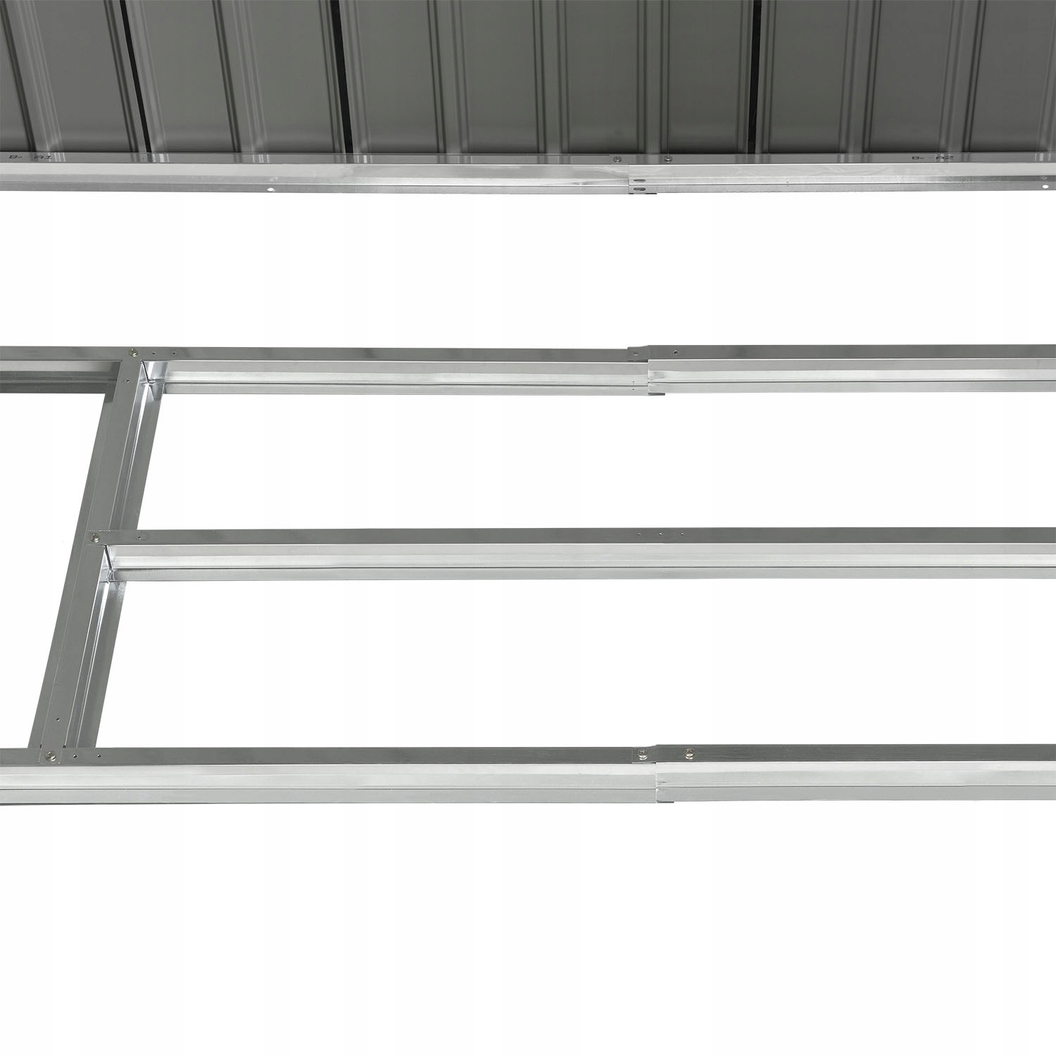 Входящий в комплект фундаментный каркас используется для компенсации неровностей садовой почвы. Он изготовлен из металла и прикручен к раме. По этой причине он обеспечивает особенно безопасную стойку, а также позволяет установить пол.