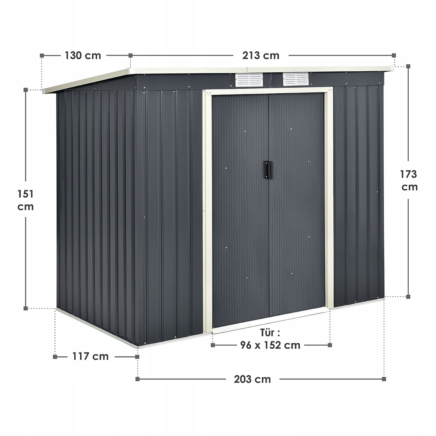 Раздвижные двери, состоящие из двух частей, обеспечивают круглогодичный доступ к вашему сараю. Даже в сильный снегопад можно без усилий открыть межкомнатные двери. Широкий проем 96 см также позволяет перевозить крупногабаритные предметы. Кроме того, дверные ручки могут быть оснащены замком для их блокировки.