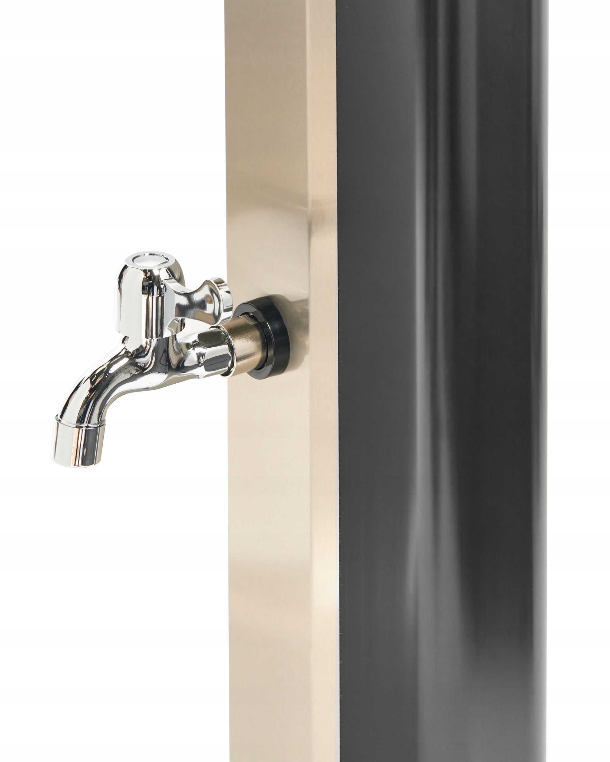 Этот элегантный отдельно стоящий садовый душ изготовлен из прочной нержавеющей стали, что обеспечивает долговечность. Работающий на солнечной энергии, он является экологическим решением для любого открытого пространства. Изделие также имеет кран меньшего размера, благодаря которому можно вымыть ноги перед входом в бассейн. Нежный поток воды напоминает летний дождь, принося освежение и расслабление в жаркие дни. Современный дизайн в сочетании с возобновляемым источником энергии гарантирует стиль и функциональность. Душ также легко установить и использовать ежедневно.