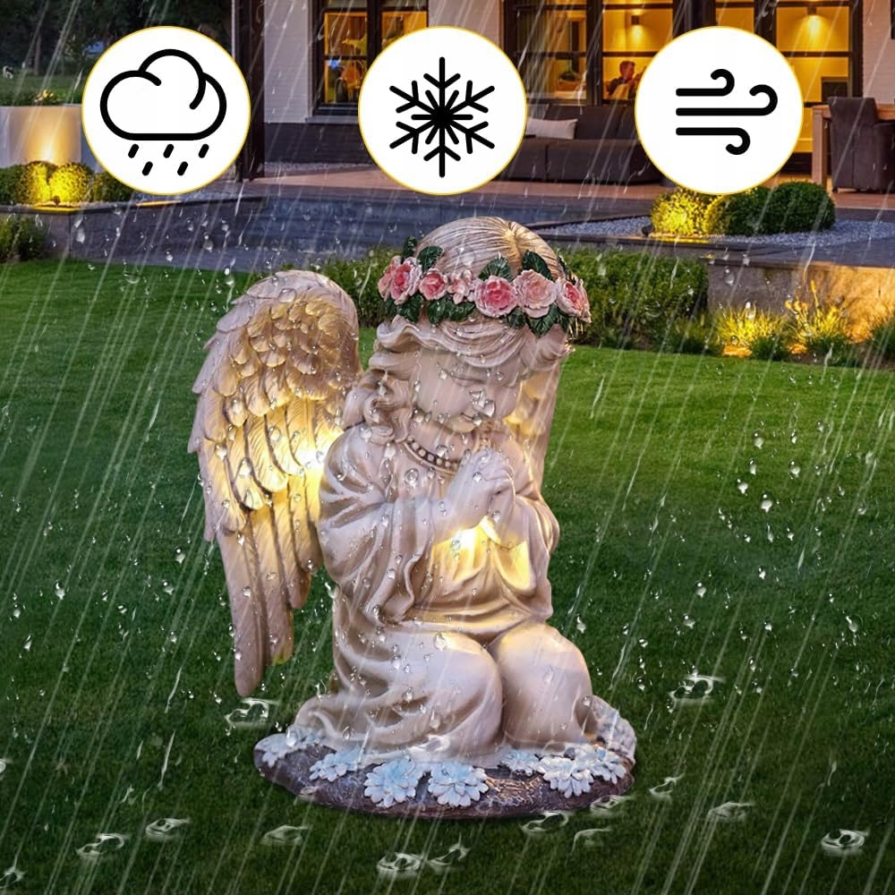 Благодаря прочной конструкции и устойчивости к дождю, снегу и ультрафиолетовым лучам статуэтка сохраняет свое очарование при любых погодных условиях ️☀️❄️. Полированная отделка подчеркивает элегантность и делает ангела чрезвычайно реалистичным 🪶🪨.
